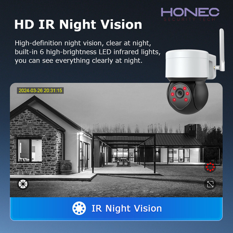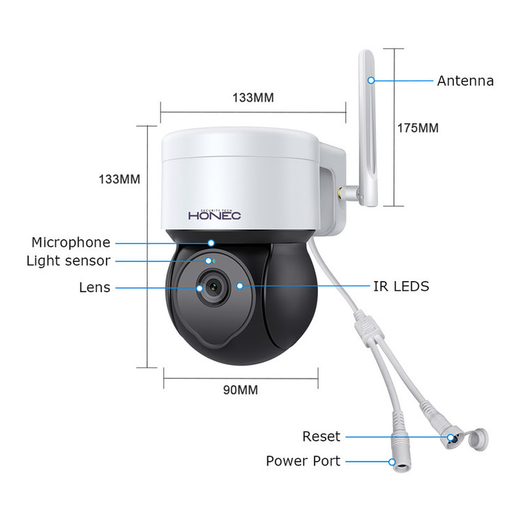 قابلیتهای دوربین امنیتی و نظارتی : قابلیت چرخش Tilt , قابلیت چرخش Pan , قابلیت بزرگنمایی دیجیتال , دید در شب , قابلیت ضبط صدا , شیار کارت حافظه