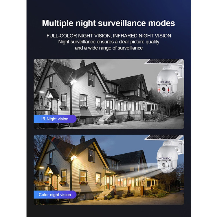 دوربین مدار بسته تحت شبکه خورشیدی مدل HN-S558-4G-BLK با نرم افزار قدرتمند از فناوری تحت شبکه نظیر به نظیر (P2P) استفاده می کند که ارتباط بین دوربین و گوشی هوشمند شما را فراهم کند. هر دوربین یک شناسه منحصر به فرد (UID) دارد و زمانی که با استفاده از اپلیکیشن یا نرم افزار با دوربین های تحت شبکه اتصال ایجاد می کنید تصاویر بر روی دستگاه شما قابل مشاهده است. دوربین های خورشیدی به شما امکان تماشای زنده و همزمان روی چندین دستگاه مانند تلفن هوشمند ، لپ تاپ یا تبلت را به طور همزمان می دهند. و این بدان معنی است که نه تنها شما بلکه اعضای خانواده نیز می توانند به طور همزمان تصاویر دوربین را دریافت کنند. با استفاده از انرژی خورشیدی برای تأمین برق مورد نیاز دوربین سولار و عدم وابستگی به شبکه کابلی برق از پنل سولار (خورشیدی) استفاده می شود. یکی از مهمترین عواملی که بر عملکرد پنل خورشیدی تأثیر می گذارد، تابش نور خورشید است که در هر مکان متفاوت است. تابش کمتر نور خورشید به عنوان مثال در روزهای ابری یا در ماه های زمستان در عملکرد ذخیره انرژی تداخلی ایجاد نمی کند. یکی از ویژگی های برتر دوربین سولار خورشیدی، بی سیم بودن (4G) می باشد. دوربین سولار خورشیدی با استفاده از ماژول سیم کارت به شبکه مخابراتی موبایل متصل می شود. ماژول سیمکارت داخلی دوربین سولار قادر می باشد تا به شبکه 4G LTE متصل شده و انتقال تصویر انجام دهد. قابلیت های دیگر این دوربین ، مکالمه دوطرفه با محیط، دزدگیر حرفه ای با قابلیت ارسال پیام هشدار، دارای پژوکتور برای دید در شب بهتر در محیط و چرخش 350 درجه به چپ و راست و 180 درجه به بالا و پایین می باشد. این دوربین 3 حالت دید در شب، حالت رنگی و حالت خودکار دارد که دارای 4 چراغ LED مادون قرمز برای دید در شب و 6 چراغ سفید برای روشن کردن محیط در شب که باعث میشه در شب تصویر رنگی با کیفیت داشته باشید و در حالت خودکار در زمان رویت سوژه یا فردی با روشن کردن 2 چراغ تعبیه شده در کناره های دوربین باعث روشن شدن محیط میشود تا تصویر رنگی با وضوح و شفافیت بالاتری نسبت به دید در شب به شما نشان دهد. دارای درگاه شیار کارت حافظه برای ذخیره تصاویر و امکان ذخیره در فضای ابری را دارد. امکان تشخیص سوژه تا فاصله 12 متر و عمق دید 30 متر را دارد.