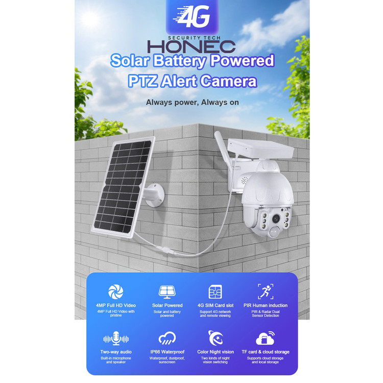 دوربین خورشیدی مداربسته تحت شبکه سیم کارتی 4G LTE هونک Honec مدل HN-S558-4G-WH